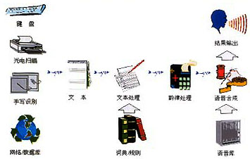-----按照人類言語(yǔ)功能的不同層次,語(yǔ)言合成也可分成三個(gè)層次,它們是:(1)從文字到語(yǔ)音的合成(Text-To-Speech);(2)從概念到語(yǔ)音的合成(Concept-To-Speech);(3)從意向到語(yǔ)音的合成(Intention-To-Speech)。這三個(gè)層次反映了人類大腦中形成說(shuō)話內(nèi)容的不同過(guò)程,涉及人類大腦的高級(jí)神經(jīng)活動(dòng)。不難想象,即使是按規(guī)則的文字到語(yǔ)音合成(文語(yǔ)合成)也已經(jīng)是相當(dāng)困難的任務(wù)。為了合成出高質(zhì)量的語(yǔ)言,除了依賴于各種規(guī)則,包括語(yǔ)義學(xué)規(guī)則、詞匯規(guī)則、語(yǔ)音學(xué)規(guī)則外,還必須對(duì)文字的內(nèi)容有很好的理解,這將涉及自然語(yǔ)言理解的問(wèn)題。從這一點(diǎn)講,文語(yǔ)轉(zhuǎn)換系統(tǒng)實(shí)際上也可看作一個(gè)人工智能系統(tǒng)。圖1顯示了一個(gè)完整的文語(yǔ)轉(zhuǎn)換系統(tǒng)示意圖。文語(yǔ)轉(zhuǎn)換過(guò)程是先將文字序列轉(zhuǎn)換成音韻序列,再由語(yǔ)音合成器生成語(yǔ)音波形。其中第一步涉及語(yǔ)言學(xué)處理,例如分詞、字音轉(zhuǎn)換等,以及一整套有效的韻律控制規(guī)則;第二步需要先進(jìn)的語(yǔ)音合成技術(shù),能按要求實(shí)時(shí)合成出高質(zhì)量的語(yǔ)音流。因此一般說(shuō)來(lái),文語(yǔ)合成系統(tǒng)都需要一套復(fù)雜的文字序列到音素序列的轉(zhuǎn)換程序,也就是說(shuō),文語(yǔ)轉(zhuǎn)換系統(tǒng)不僅要應(yīng)用數(shù)字信號(hào)處理技術(shù),而且必須有大量的語(yǔ)言學(xué)知識(shí)的支持。當(dāng)然其中語(yǔ)音合成終究還是最基本的部分,它相當(dāng)于“人工嘴巴”,任何語(yǔ)言合成系統(tǒng)包括文語(yǔ)轉(zhuǎn)換系統(tǒng),都離不開(kāi)語(yǔ)音合成器。