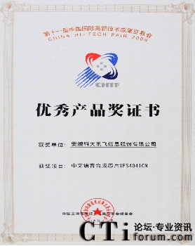 | 科大訊飛獲評“中國手機創(chuàng)新軟件金品獎十佳” 2009-11-19 |