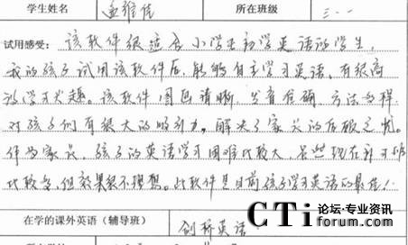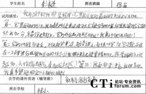 CTI論壇(ctiforum)1月21日消息(記者 潘婷婷):2010年12月,科大訊飛在天津市的兩所小學舉辦了暢言互動英語學生版試用體驗活動,同學們積極參與,在校園內(nèi)掀起了一股練聽力、學口語的英語學習熱潮。通過實際試用體驗,暢言互動英語學生版學習產(chǎn)品以其強大、實用的學習功能,得到了廣大家長、學校師生的一致認可和充分肯定。