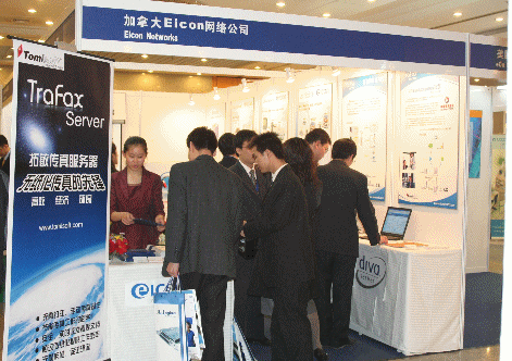 拓敏軟件Tomisoft與加拿大Eicon Networks共同展示了拓敏傳真服務(wù)器TraFax Server----企業(yè)級無紙化傳真解決方案。在精美的展板與宣傳冊的配合下,通過講解員的專業(yè)介紹,盡情地展示了目前國內(nèi)最優(yōu)秀的無紙化傳真解決方案的非凡風(fēng)采。TraFax Server與CallCenter、 CRM、ERP的完美結(jié)合引起了與會代表們的關(guān)注。