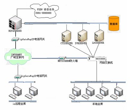 采用Juniper的netscreen-5GT的防火墻,在其內(nèi)部做端口映射,結(jié)合遠(yuǎn)程ip電話。這樣的話可以使遠(yuǎn)程的Crm登錄到cti,外線呼入可以將其轉(zhuǎn)到遠(yuǎn)程坐席上。對(duì)于公司將來(lái)的擴(kuò)展新的營(yíng)業(yè)點(diǎn)提供了技術(shù)方案。