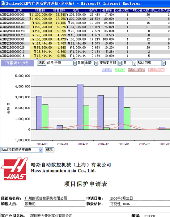 ,"可擴(kuò)展樣式語(yǔ)言轉(zhuǎn)換")來(lái)制作。這種語(yǔ)言也是通用的,并且容易掌握。為了獲得更強(qiáng)大的功能,XSLT允許插入Javascript等一些其他語(yǔ)言或者插件。在這些語(yǔ)言的操縱下,結(jié)果樹(shù)的輸出形式是非常靈活的。下圖是國(guó)內(nèi)知名的CRM軟件--SynleadCRM企業(yè)版將其XML數(shù)據(jù)源轉(zhuǎn)換成的一些報(bào)表和圖表:
