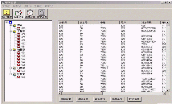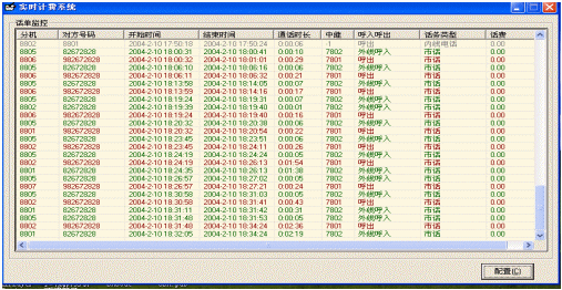 實(shí)時計(jì)費(fèi)系統(tǒng)不但對與外線接通的呼叫進(jìn)行記錄,同時對內(nèi)線之間的呼叫、未接通的呼叫進(jìn)行記錄,并且在發(fā)生轉(zhuǎn)接的情況下,分別對不同分機(jī)做呼叫記錄。