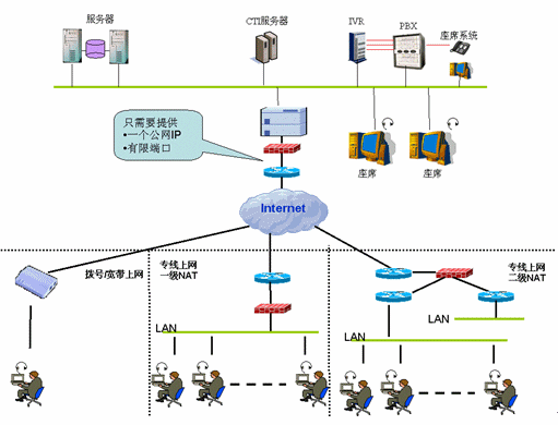 2、限制客戶使用、導(dǎo)致投資浪費——要求客戶的計算機不能在Nat之后,要求客戶的防火墻必須開放389,522,1500,1503,1720,1731端口和UDP的、端口號在10000以上的區(qū)域供其動態(tài)獲取進行視頻和音頻使用,這種要求是大多數(shù)客戶無法做到的,將直接導(dǎo)致大量客戶無法使用ICC功能,造成該功能的空置,無法實現(xiàn)系統(tǒng)的建設(shè)目標(biāo);
