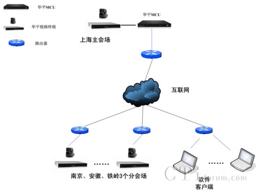 在系統(tǒng)的架設上,華平為上航特種車公司在雙線托管機房架設了一臺MCU服務器,用雙線機制解決電信、網(wǎng)通的網(wǎng)絡瓶頸問題,同時實現(xiàn)視音頻的合成和轉(zhuǎn)發(fā);在上海、南京、安徽、鐵嶺4個會議室各部署一臺標清硬件終端,達到標清品質(zhì)的視頻通訊應用;同時針對移動參會用戶,華平為其配置了4個點的軟件客戶端,使上航特種車公司相關領導和員工在出差情況下也可以通過筆記本電腦參會。此系統(tǒng)設計不僅具備良好的視音頻通訊效果,同時還具備強大的數(shù)據(jù)輔助功能,可滿足會議、培訓甚至是遠程協(xié)作的應用需求。