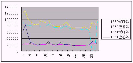 圖二 新1861系統(tǒng)上線前后試呼次數和應答次數比較