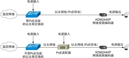 KDM2440P集成了以太網(wǎng)供電(PoE)功能,可在一根以太網(wǎng)線上同時(shí)實(shí)現(xiàn)IP碼流傳輸和電源信號輸入,利用該電源信號,除了可以對設(shè)備本身進(jìn)行供電外,還可以輸出1路電源信號用于攝像機(jī)供電*。通過PoE,用戶無需另布電源線,可有效簡化前端部署、節(jié)約系統(tǒng)成本,而且,還便于在中心部署不間斷電源(UPS),以提升系統(tǒng)可靠性和穩(wěn)定性。