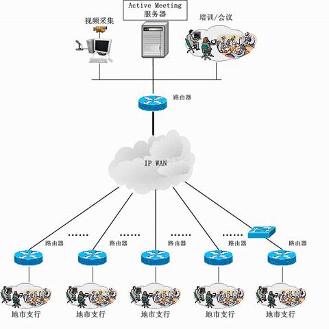 針對(duì)南京興業(yè)銀行的網(wǎng)絡(luò)和營(yíng)業(yè)網(wǎng)點(diǎn)的分布情況,網(wǎng)動(dòng)科技結(jié)合Active Meeting系統(tǒng)的特點(diǎn),推薦了“網(wǎng)內(nèi)架Server,20個(gè)營(yíng)業(yè)網(wǎng)點(diǎn)同步互動(dòng),后期冗余擴(kuò)充”的方案,采用這種解決方案的優(yōu)點(diǎn)非常明顯: