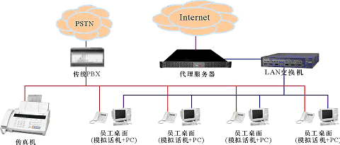 。。某中小企業(yè),無分支機構,現(xiàn)時有一個由傳統(tǒng)PBX構建的電話系統(tǒng)和一個以太局域網(wǎng),兩者相互獨立,局域網(wǎng)通過一臺代理服務器用以太網(wǎng)或ADSL方式接入Internet。企業(yè)的語音通信由電話系統(tǒng)實現(xiàn);員工的日常工作需要使用計算機以及多種局域網(wǎng)和Internet服務(如文件共享、網(wǎng)絡打印、瀏覽網(wǎng)頁、收發(fā)郵件等),這些服務通過局域網(wǎng)提供,目前,在企業(yè)的經(jīng)營管理上還沒有應用相關的業(yè)務系統(tǒng)(如工作流、ERP、CRM等)。