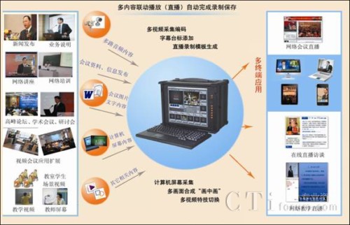 相比傳統(tǒng)的直播錄播系統(tǒng),經(jīng)緯中天支持多終端應(yīng)用的富媒體直播錄播系統(tǒng)突出了以用戶為中心,除了簡單的視頻直播,更加豐富地融合了多內(nèi)容媒體直播錄播功能,例如信息發(fā)布、圖文直播、互動交流、圖片報道等,同時以全FLASH富媒體模板形式全方位展示現(xiàn)場信息,更主要的是支持多終端應(yīng)用,不僅僅是傳統(tǒng)的PC、電視機(jī),還可通過IPAD等多種平板電腦實(shí)現(xiàn)應(yīng)用,充分滿足了用戶的需求,極大地擴(kuò)展了網(wǎng)絡(luò)視頻應(yīng)用范圍。