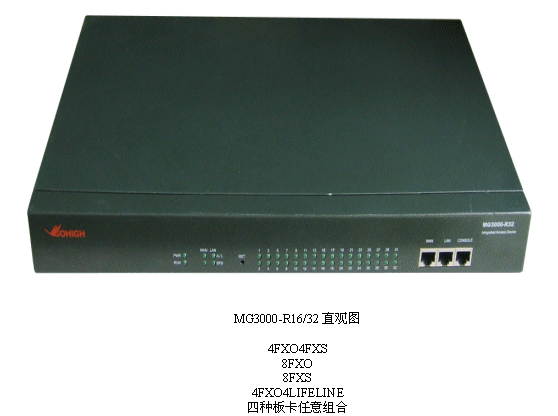 在介紹MG3000-R系列產(chǎn)品的典型應(yīng)用時,產(chǎn)品中心研發(fā)經(jīng)理介紹到:“MG3000-R適用于企業(yè)原有直線電話系統(tǒng)的VOIP改造、原有PBX電話系統(tǒng)的VOIP改造。與軟交換配合后可做中繼使用,也是企業(yè)異地分支機構(gòu)的最佳選擇。再有,在IP呼叫中心中,它還可以構(gòu)建呼叫中心的遠(yuǎn)端坐席。此外還有話務(wù)臺等應(yīng)用!
