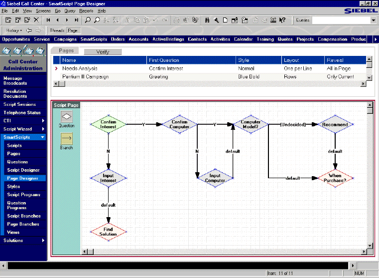 | 圖三. Siebel eMarketing綜合的客戶及市場(chǎng)分析 | 圖四. 使用Siebel eSmartScript工具設(shè)計(jì)市場(chǎng)營銷策略工作流程 |