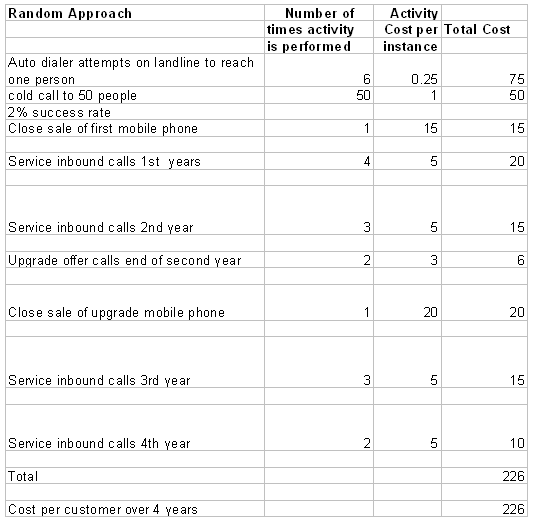 表格1:獲得客戶的隨機(jī)法的行動成本計算