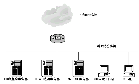 其中存儲方面,利用檔案館現(xiàn)有DELL磁盤陣列,作為公務網(wǎng)VOD節(jié)目的存儲,容量可滿足公務網(wǎng)的目前需求,并支持今后的系統(tǒng)擴展。