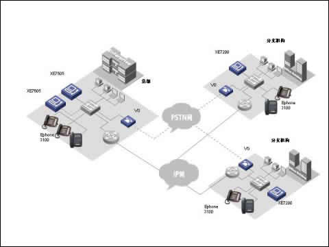 華為三康的XE7000IP語音解決方案是為企業(yè)提供融合的通信解決方案,在同一網絡上融合語音、數據和視頻信息,以滿足其日益增長的企業(yè)通信的要求從而解決了現(xiàn)代企業(yè)面對的傳統(tǒng)PBX語音服務和IP網絡數據服務分離問題。華為三康的XE7000IP語音解決方案構建在企業(yè)現(xiàn)有IP數據網絡之上,以集中式管理方式提供企業(yè)全網范圍內的呼叫控制以及管理,業(yè)務控制和信令分離使得用戶在管理上更加簡單透明,極大的節(jié)省了日常維護費用和降低了維護難度。并使得客戶可以在任意地方實現(xiàn)IP語音數據接入,使得企業(yè)分布式辦公的不再因為物理空間隔離而無法實現(xiàn)。