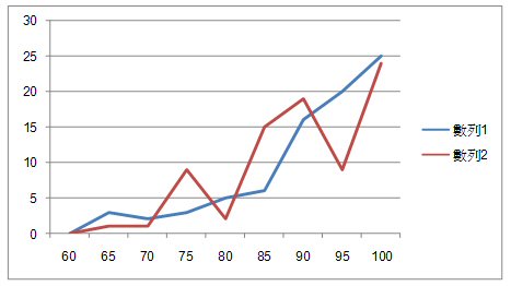 把這兩列人數(shù)放在一起畫(huà)圖,就看到上面的頻次表。
