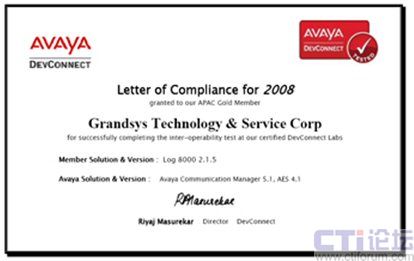 2008年7月 —Grandsys(宏盛高新技術(shù)有限公司)宣布其自創(chuàng)品牌[Grandsys LOG8000 錄音與質(zhì)檢解決方案]正式通過AVAYA DevConnect 的認證。Grandsys正是全球為數(shù)不多的已經(jīng)通過該項認證的AVAYA 合作伙伴之一,包含知名廠家Nice及Verint等,這代表Grandsys的技術(shù)已達到國際知名廠家的水平, 國內(nèi)客戶也因此有機會享受到最優(yōu)質(zhì)的產(chǎn)品及服務(wù)。