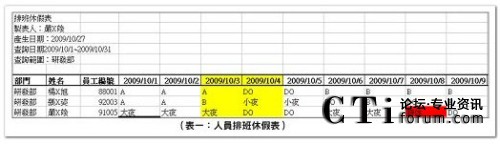 人員排班休假表
