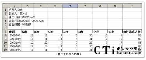 - 班別人力表:提供當天不同班別之排定人數,便于以班別為思考的管理方式。