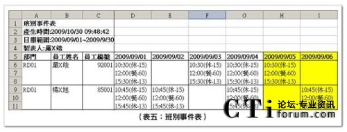 分時人力表