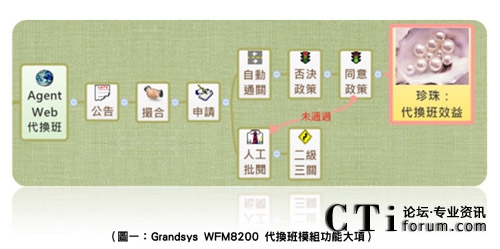 以Grandsys WFM8200為例,其所提供的班務(wù)管理模組,允許呼叫中心匯入Excel班表并提供主管以圖形拖拉調(diào)度班務(wù),而客服人員可以瀏覽器,進(jìn)行代換班之公告、撮合、申請(qǐng),除了自動(dòng)比對(duì)同意否決政策進(jìn)行,自動(dòng)通關(guān)的判斷以外,班組長或排班師也可進(jìn)行人工批閱,可以說是呼叫中心入門的班務(wù)管理系統(tǒng)。