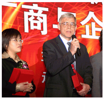 穆彼得先生接過(guò)十大咨詢商榮譽(yù)證書(shū)