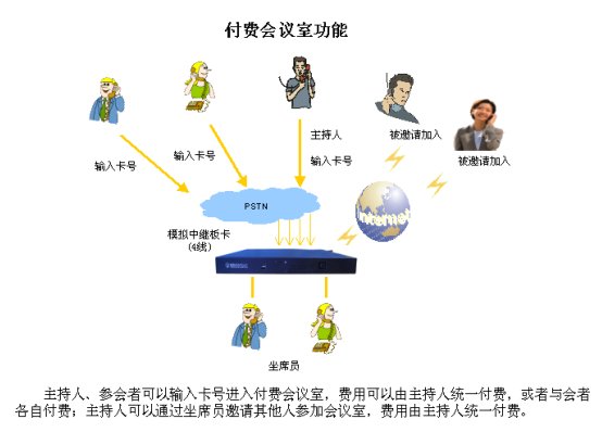 IPPBX的付費會議室適合虛擬運營商或者系統(tǒng)集成商,能為企業(yè)提供付費會議室的專業(yè)服務(wù)。適用于解決企業(yè)的商務(wù)問題的快速決議,公司例會的定期召開,突發(fā)問題的快速處理,以及企業(yè)員工的全面培訓(xùn)。還可以廣泛應(yīng)用于行政會議、遠(yuǎn)程教育、商務(wù)會談、遠(yuǎn)程醫(yī)療、應(yīng)急通信、聊天等方面,具有廣闊的市場前景。