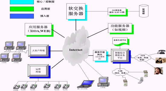 在此基礎(chǔ)下電信、網(wǎng)通、移動(dòng)、聯(lián)通、鐵通、衛(wèi)通等電信運(yùn)營(yíng)商可用來(lái)做下一代網(wǎng)絡(luò)(NGN)業(yè)務(wù)及運(yùn)營(yíng),虛擬電信運(yùn)營(yíng)商和增值業(yè)務(wù)服務(wù)商、新興電信運(yùn)營(yíng)商開(kāi)展各種電信運(yùn)營(yíng)、增值業(yè)務(wù)和搶占語(yǔ)音市場(chǎng)的利器,政府和企業(yè)辦公的即時(shí)通信平臺(tái)和呼叫中心平臺(tái)、信息服務(wù)、管理平臺(tái)。