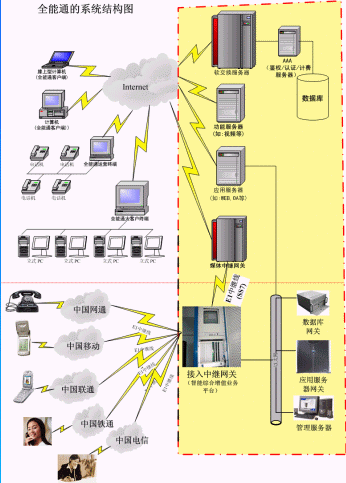 在和創(chuàng)世紀(jì)全能通的基礎(chǔ)下電信、網(wǎng)通、移動(dòng)、聯(lián)通、鐵通、衛(wèi)通等電信運(yùn)營(yíng)商可用來(lái)做下一代網(wǎng)絡(luò)(NGN)業(yè)務(wù)及運(yùn)營(yíng),虛擬電信運(yùn)營(yíng)商和增值業(yè)務(wù)服務(wù)商、新興電信運(yùn)營(yíng)商開(kāi)展各種電信運(yùn)營(yíng)、增值業(yè)務(wù)和搶占語(yǔ)音市場(chǎng)的利器。(具體有關(guān)‘如何用全能通平臺(tái)切入語(yǔ)音市場(chǎng)’,請(qǐng)來(lái)來(lái)電咨詢)