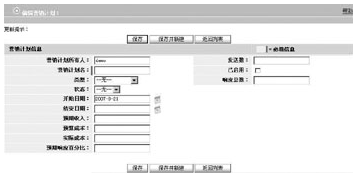 營(yíng)銷計(jì)劃管理功能可以讓用戶跟蹤每個(gè)營(yíng)銷計(jì)劃已生成的業(yè)務(wù)機(jī)會(huì)量。當(dāng)創(chuàng)建業(yè)務(wù)機(jī)會(huì)時(shí),用戶可以在營(yíng)銷計(jì)劃來源字段中填入相關(guān)信息,以表明該業(yè)務(wù)機(jī)會(huì)是由營(yíng)銷計(jì)劃生成的,從而檢驗(yàn)、評(píng)定每個(gè)營(yíng)銷計(jì)劃的執(zhí)行效率。