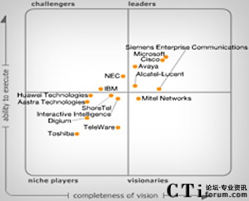 CTI論壇(ctiforum)10月8日消息(記者 楊佳林):在最近公布的2011年度Gartner統(tǒng)一通信魔法象限中,Avaya憑借其卓越“執(zhí)行能力”和“愿景完成度”躋身領導者象限。