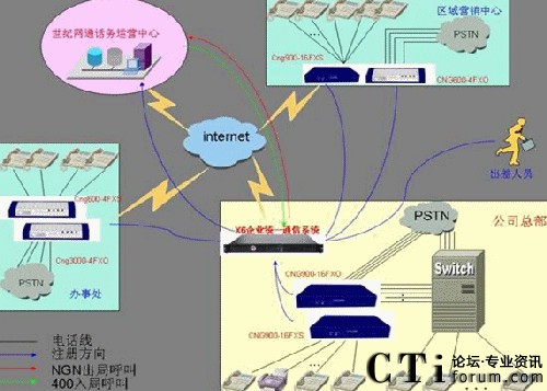 總部現(xiàn)在使用的為傳統(tǒng)PBX設備,配置為50路外線和200內線,分機為8前綴4位的分機號碼,如8001分機。32個的辦事處使用電信匯線通或直接的PSTN線路,2個的區(qū)域營銷中心使用匯線通或直接的PSTN線路,2個分公司使用的小型PBX。總部目前申請了4條2M的ADSL線路做為一個集合,沒有固定的IP地址,各個分公司也多使用ADSL上網(wǎng)或電信的小區(qū)寬帶上網(wǎng)。