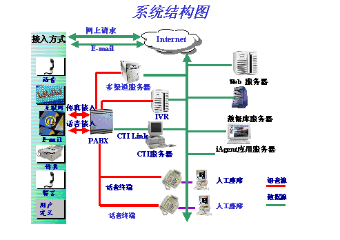 滿足呼叫中心多渠道接入的需求,使Internet呼叫中心成為現(xiàn)實(shí)。將網(wǎng)上ip電話請(qǐng)求納入傳統(tǒng)語(yǔ)音呼叫統(tǒng)一管理,無縫集成Email,傳真功能,實(shí)現(xiàn)網(wǎng)頁(yè)的互推瀏覽,文字交談,ip電話,網(wǎng)上資料發(fā)送等功能。