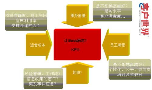 所以,我們認為呼叫中心的運營解決方案,應該綜合協(xié)調(diào)人力資源管理、話務預測、自動排班、績效考評、話務分析、現(xiàn)場管理、實時預警等各個現(xiàn)場管理要素。各個要素之間即是相互獨立,又相互關聯(lián)的,系統(tǒng)通過設置目標值,達到管理目標的均衡,這個平衡,從最核心的體現(xiàn)來看,就是一個完整的KPI體系中各個指標的實現(xiàn)。