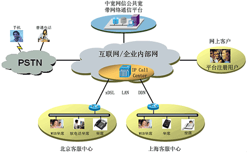 - IP Call Center接入中寬網(wǎng)信寬帶電話服務(wù)可使企業(yè)IP呼叫中心成為面向全球PSTN及網(wǎng)上用戶的呼叫中心系統(tǒng)。