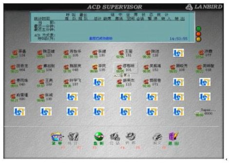 可監(jiān)視客戶服務(wù)平臺的全部坐席的工作狀態(tài), 包括簽入, 簽出, 空閑,示忙, 正在通話, 等待應(yīng)答, 等待來話, 用戶掛機, 等待被叫振鈴,