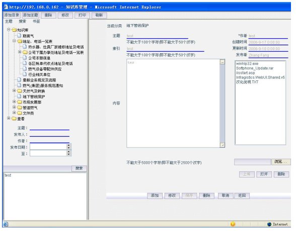 8)知識(shí)庫:業(yè)務(wù)信息和業(yè)務(wù)知識(shí)以知識(shí)庫的方式進(jìn)行管理和查詢,為坐席和知識(shí)庫管理人員提供樹狀分支并支持模糊查詢的知識(shí)庫,通過它可以迅速查找出相應(yīng)的知識(shí)點(diǎn),可以對(duì)知識(shí)條目進(jìn)行收藏和查詢排名。