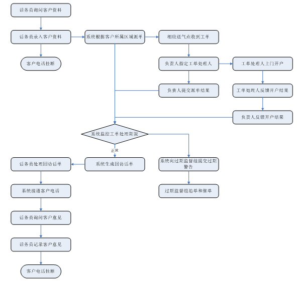 處理狀態(tài)查詢:用戶可以通過人工、自動語音、短信、傳真、Email、web等方式以受理號、用戶編號等關(guān)鍵字段查詢有關(guān)受理的處理情況和處理狀態(tài)。對用戶的查詢和催告均應有詳細記錄。