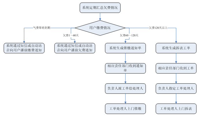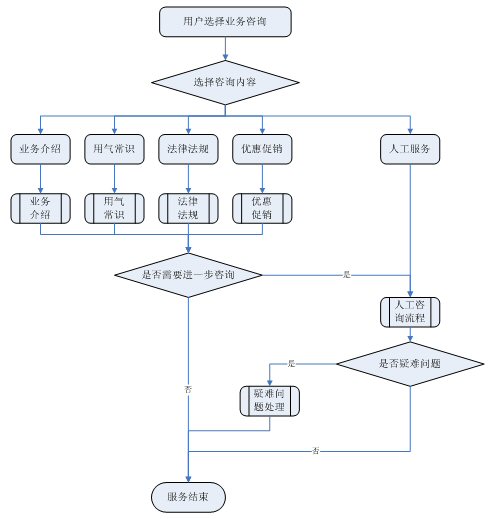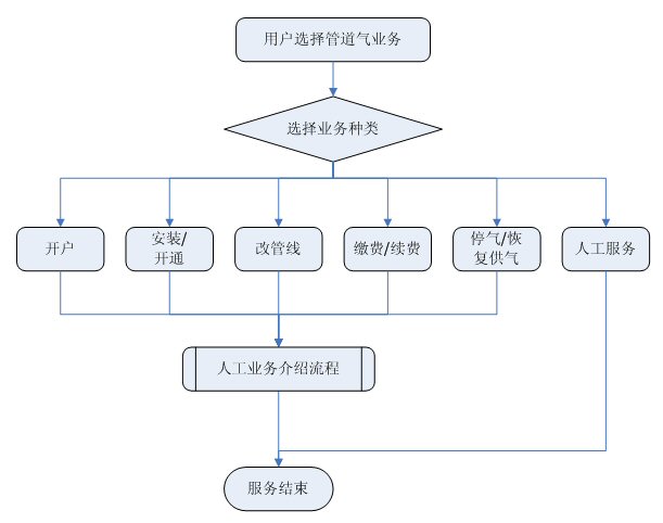 業(yè)務咨詢:用戶通過人工、自動語音等方式咨詢有關(guān)政策法規(guī)、資費標準、用氣常識、報裝方法等,系統(tǒng)以語音、傳真、Email、短消息等方式回復客戶。