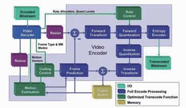 過去幾年來,業(yè)界針對(duì)轉(zhuǎn)碼工作提出了幾種不同的方法,可提高處理與存儲(chǔ)器資源的使用效率。大多數(shù)這種方案都建立在這樣一種認(rèn)識(shí)基礎(chǔ)之上,即我們能通過更先進(jìn)的技術(shù)對(duì)初始編碼過程中創(chuàng)建的量子化和頻率域信息進(jìn)行修改,更好地加以利用,摒棄其中無用的東西,而不必簡(jiǎn)單地對(duì)原始視頻內(nèi)容進(jìn)行重構(gòu)。