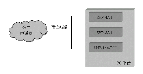 單純的語音系統(tǒng)(不需要座席,傳真等附加功能),可以采用SHP-4A、SHP-8A和SHP-16A系列的模擬線語音卡來構(gòu)成,并且不需要連接卡間交換總線,這類系統(tǒng)如證券電話委托系統(tǒng),語音信箱留言系統(tǒng),銀行稅務(wù)查詢催繳系統(tǒng)等,其典型系統(tǒng)結(jié)構(gòu)如下: