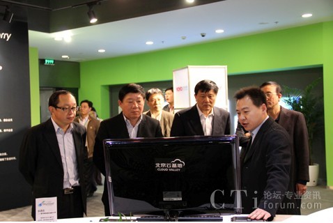 CTI論壇(ctiforum)3月29日消息(記者 潘婷婷):3月11日下午,上海市副市長艾寶俊、市經(jīng)信委主任王堅、市經(jīng)信委軟件和信息服務業(yè)處處長朱宗堯等一行人專程來北京云基地,在寬帶資本董事長田溯寧、云基地公司董事長趙安建等人的陪同下對云基地進行了參觀和考察。