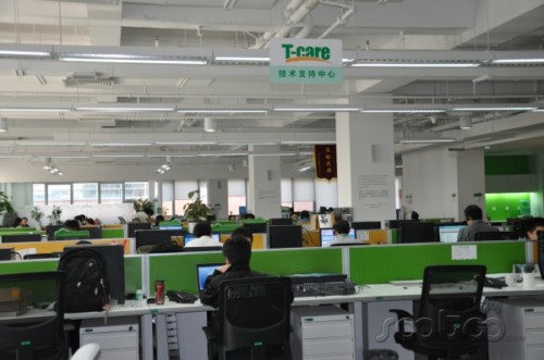 從這兩個(gè)大屏幕上,T-care服務(wù)中心的技術(shù)人員可以隨時(shí)監(jiān)控網(wǎng)絡(luò)和系統(tǒng)狀態(tài)動(dòng)態(tài),為呼叫中心穩(wěn)定運(yùn)行保駕護(hù)航。