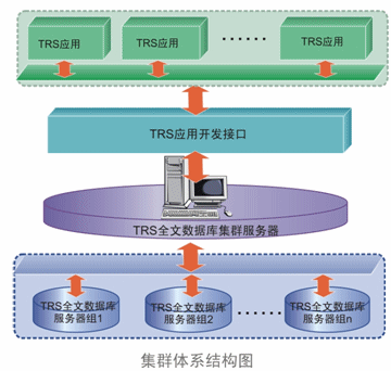 TRS全文數(shù)據(jù)集群服務(wù)器,是架構(gòu)在多個(gè)物理TRS全文數(shù)據(jù)庫服務(wù)器之上的分布式管理系統(tǒng),它支持?jǐn)?shù)據(jù)分布及負(fù)載均衡兩種方式,并支持兩種方式的組合運(yùn)用,滿足用戶海量數(shù)據(jù)和高并發(fā)環(huán)境下的分布式檢索、檢索性能和可靠性要求。