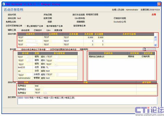 電話行銷(xiāo)活動(dòng)的基本特征具有高度的靈活性。每個(gè)電話行銷(xiāo)活動(dòng)都有其自己的靈活參數(shù),如撥打狀態(tài),Q&A資料檔,行銷(xiāo)話術(shù)流程,活動(dòng)對(duì)象,參與人員,判定規(guī)則,撥打順序,活動(dòng)內(nèi)容和問(wèn)卷調(diào)查等