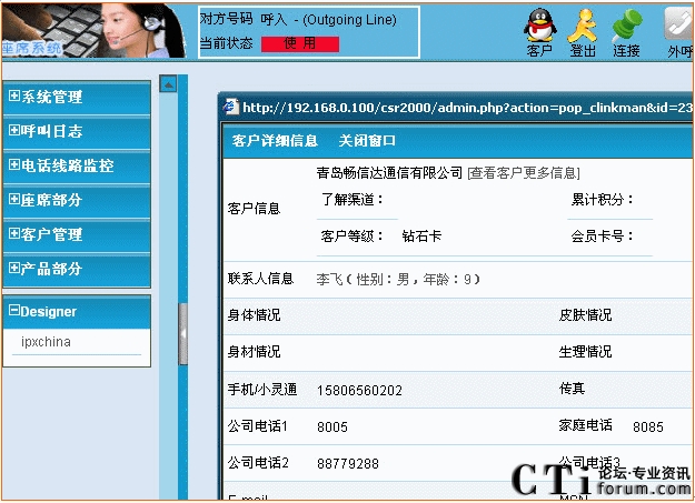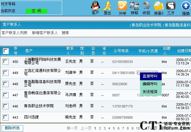 9. 外呼功能:座席人員可以選擇并點(diǎn)擊已有的聯(lián)系人、客戶的電話號(hào)碼,系統(tǒng)便自動(dòng)外呼并接通座席電話,座席人員也可以手工輸入對(duì)方號(hào)碼,點(diǎn)擊外呼。
