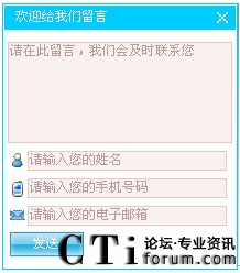 17.網(wǎng)站留言:網(wǎng)站留言是用于在CSR2000用戶的網(wǎng)站頁(yè)面上添加一個(gè)窗口,通過(guò)這個(gè)窗口,網(wǎng)站的訪問(wèn)者可以輸入自己的聯(lián)系方式與需求情況,然后由CSR2000系統(tǒng)將信息傳遞給座席,如下圖: