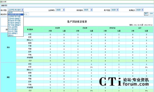 報表-回訪統(tǒng)計-業(yè)務(wù)種類-聯(lián)系意向: