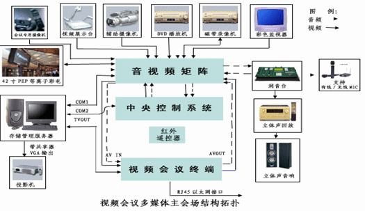 根據(jù)貴單位的分布特點,視頻會議會議系統(tǒng)建立7個會場,其中主會場一個,設在大樓的會議室,分會場6個,設在各下屬單位會議室。傳輸信道采用系統(tǒng)內(nèi)部的寬帶IP綜合網(wǎng)絡。