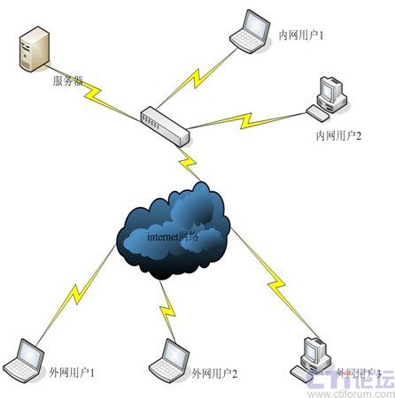 由于視頻會議系統(tǒng)服務器放在總部內網(wǎng),通過端口影射,內網(wǎng)用戶用內網(wǎng)服務器地址登陸,外網(wǎng)用戶通過外網(wǎng)IP登陸即可,實現(xiàn)內外網(wǎng)互聯(lián)。